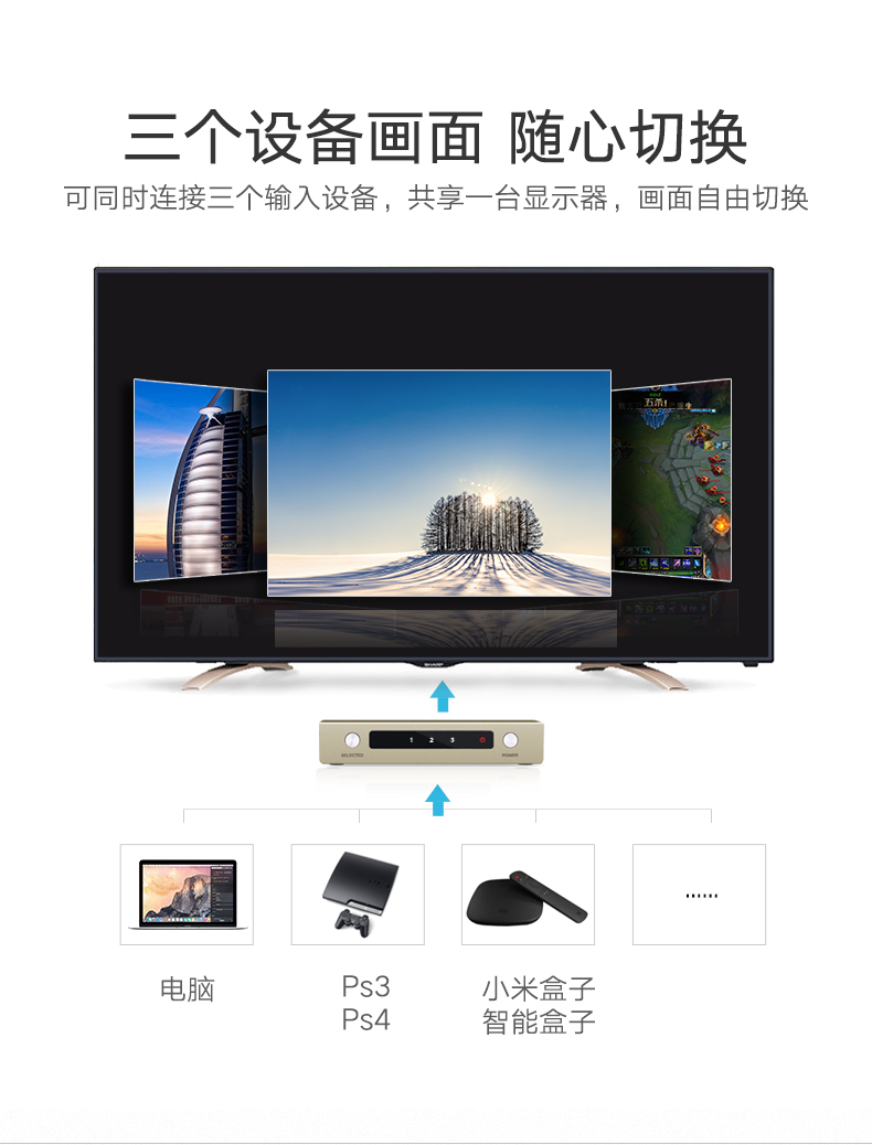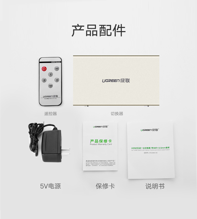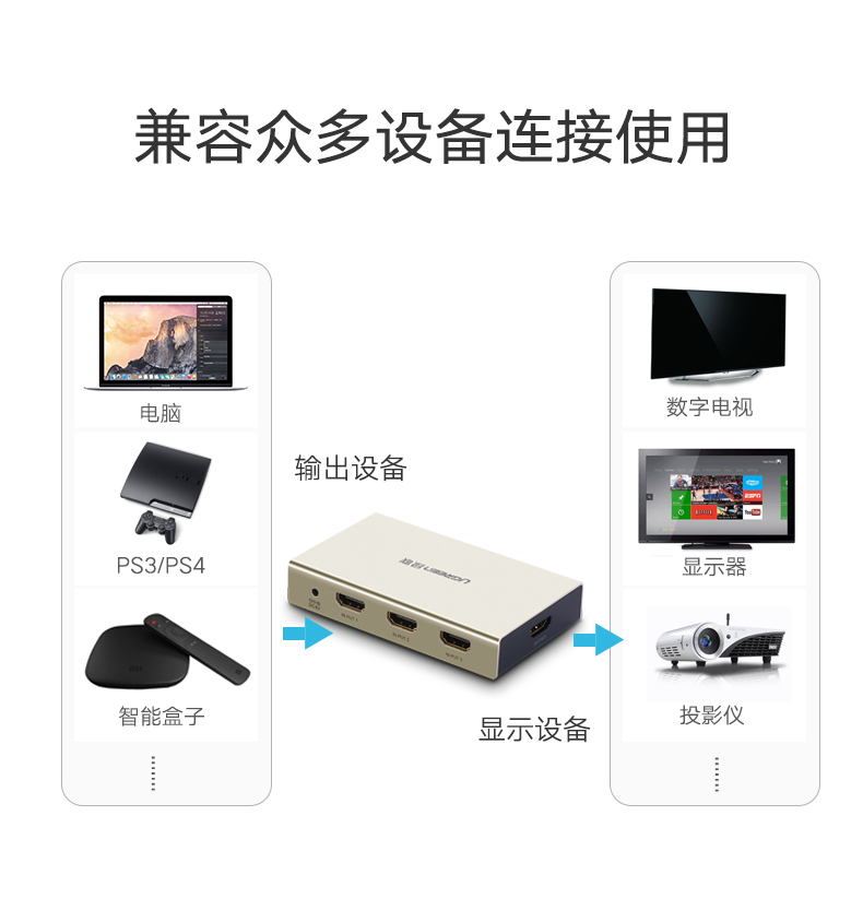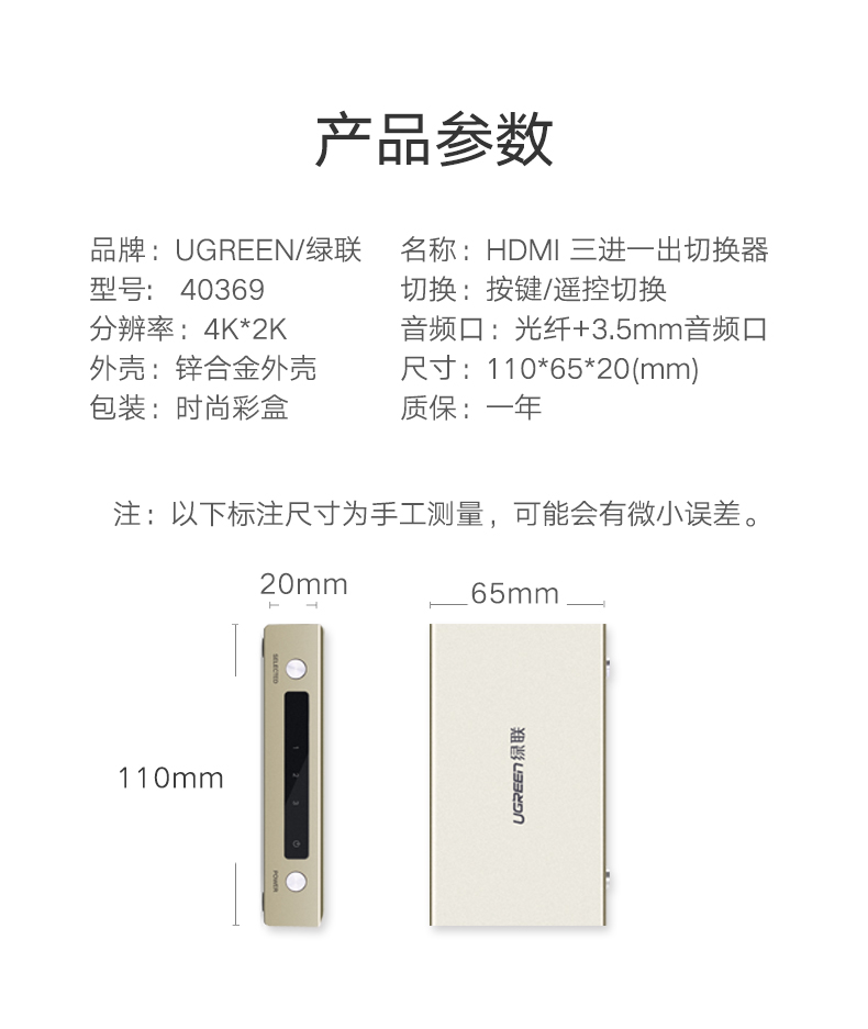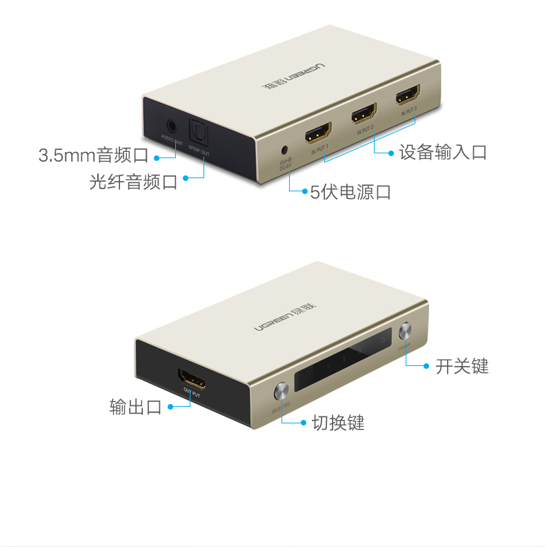 输出端:1xHDMI;1x3.5mm立体声;1xSPDIF