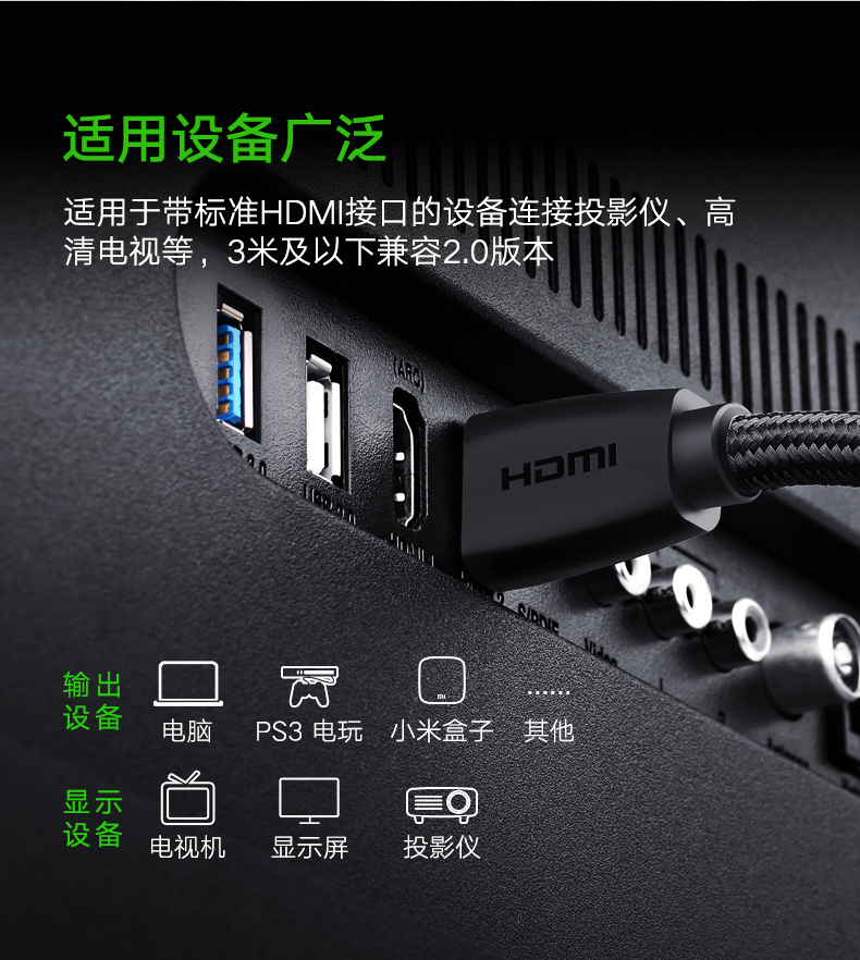 绿联 绿联 HD118 HDMI线 带编织网_5米(整箱32条)