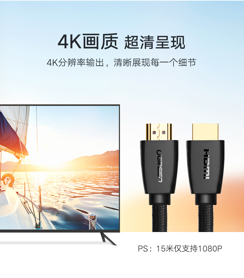 绿联 HD118 HDMI线 带编织网_8米(整箱32条)