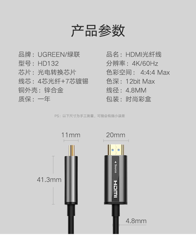 绿联 HD132光纤HDMI线2.0版10米(整箱20条)