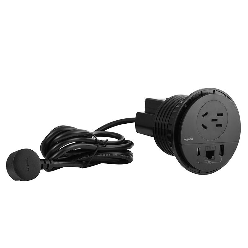 桌面/D60嵌入式USB A+C口插座,1.5M线自由端,黑色 PIF60/USB/F-C