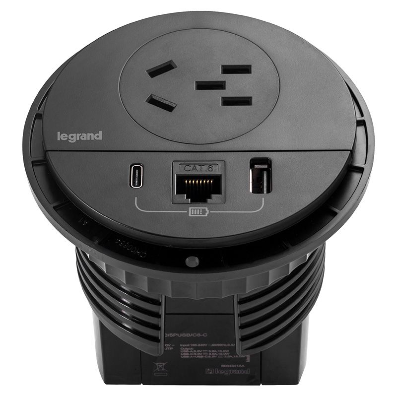 桌面/五孔USB +AC口+六类网口 黑/无插头2米 PIF80/5PUSB/C6/F-C