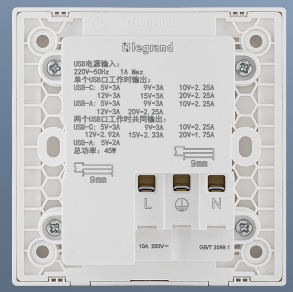 F9逸景PULS F9陶瓷白/五孔Type A+C 插座 45W 86*86 F9/426/10US/UD